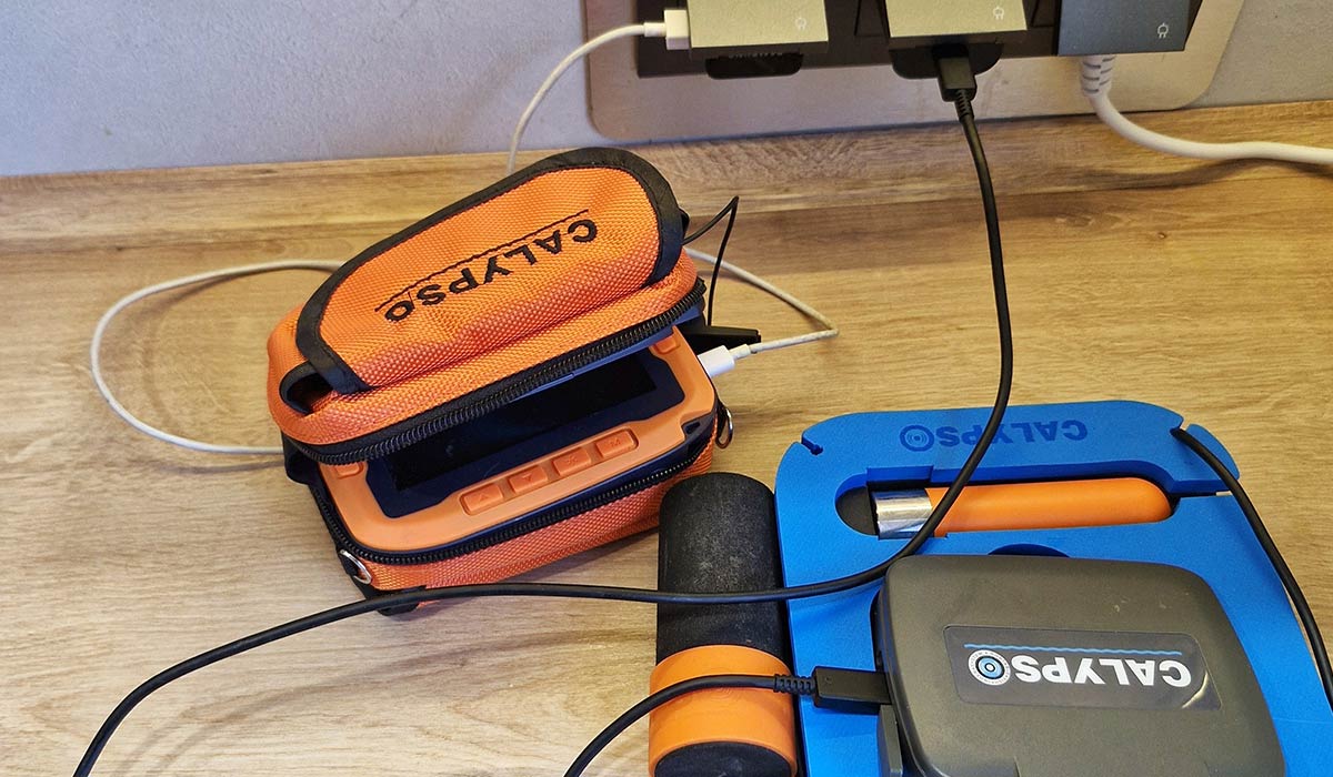 Где-то в процессе подготовки не надо забыть зарядить электронику, помогающую на рыбалке: эхолот и подводную камеру, а также пауэрбанк — на всякий случай. Хотя собственного заряда камере и эхолоту Calypso хватает минимум на полноценные день−два рыбалки.