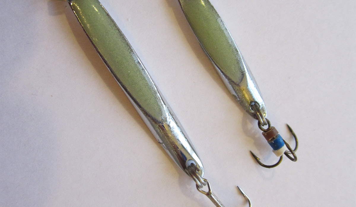 Лет 25 назад я впервые попробовал ловлю корюшки на блесны. Из всего разнообразия лучше работали разнообразные пилькеры, имеющие игру гвоздя с маленькой доработкой. Одна из сторон блесны покрывалась светосоставом. Тройник заменялся на одинарный крючок с насадкой, который крепился на цепочке. Блесны в отдельные рыбалки были заметно эффективнее статических удочек, особенно если глубина была относительно небольшая и не превышала 15–18 метров.
