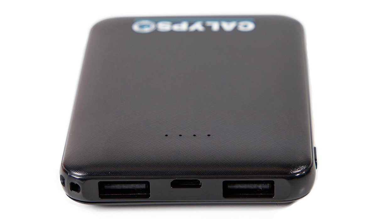 Компактность — 90 × 62 × 13 мм, вес — 100 г. Пауэрбанк помещается в карман фирменной сумки-чехла Calypso, карман куртки и не занимает место в рыболовном ящике.