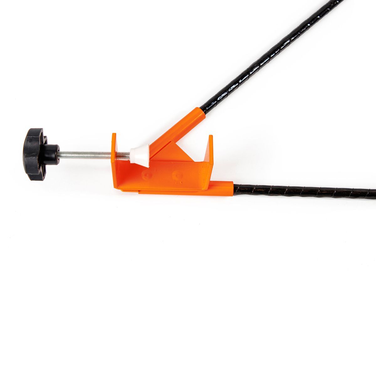- Вставьте стержень с камерой в вертикальную трубку, а стержень с катушкой – в наклонную