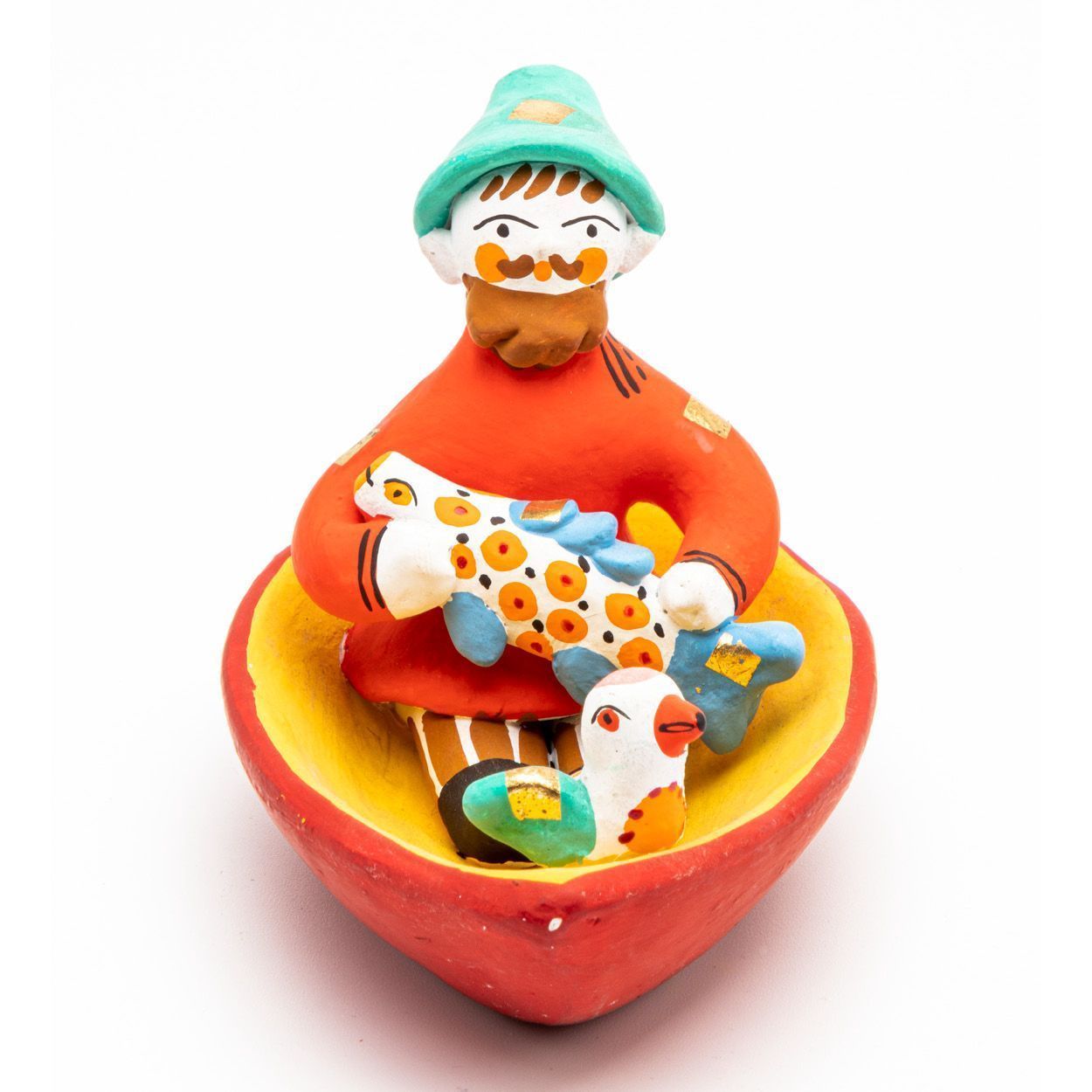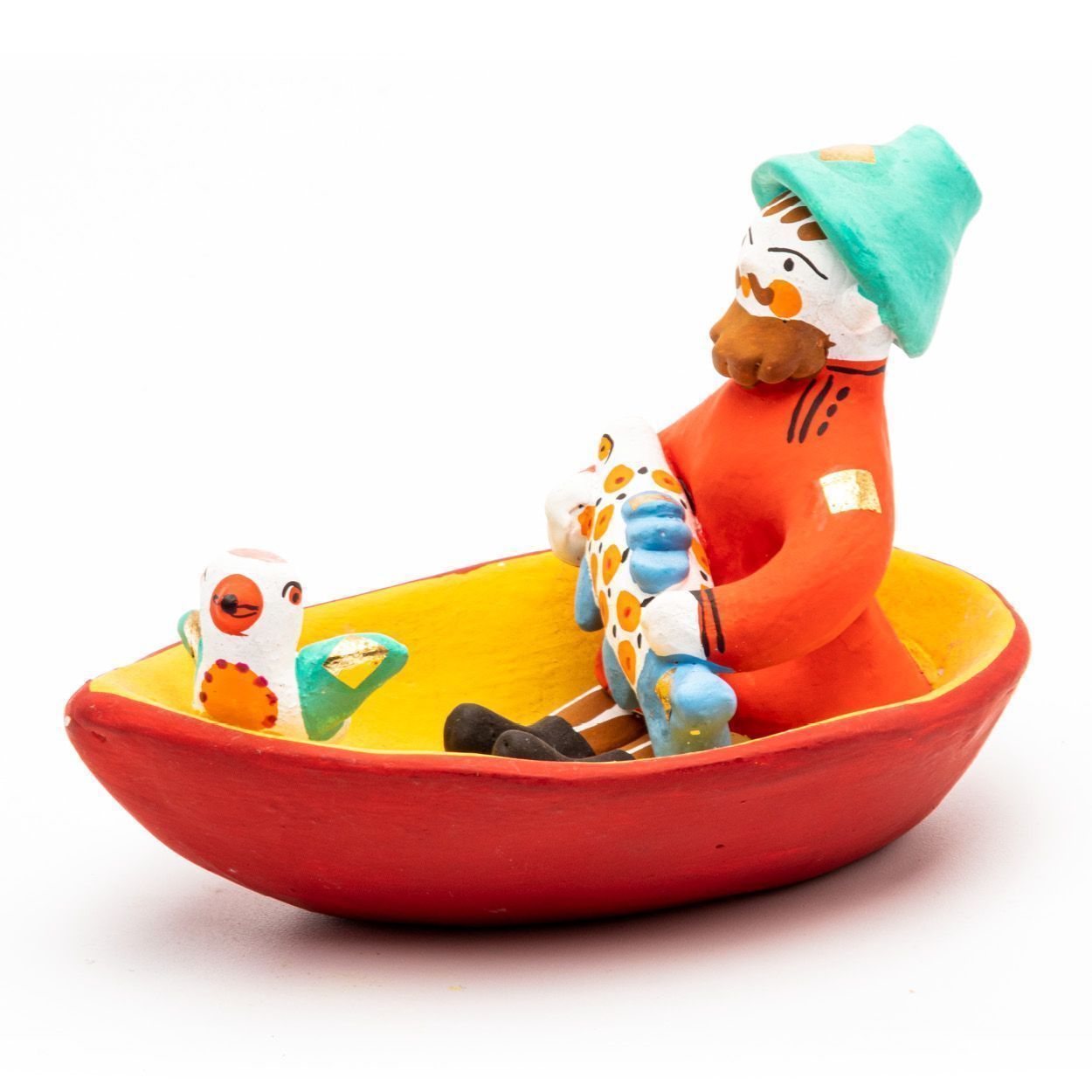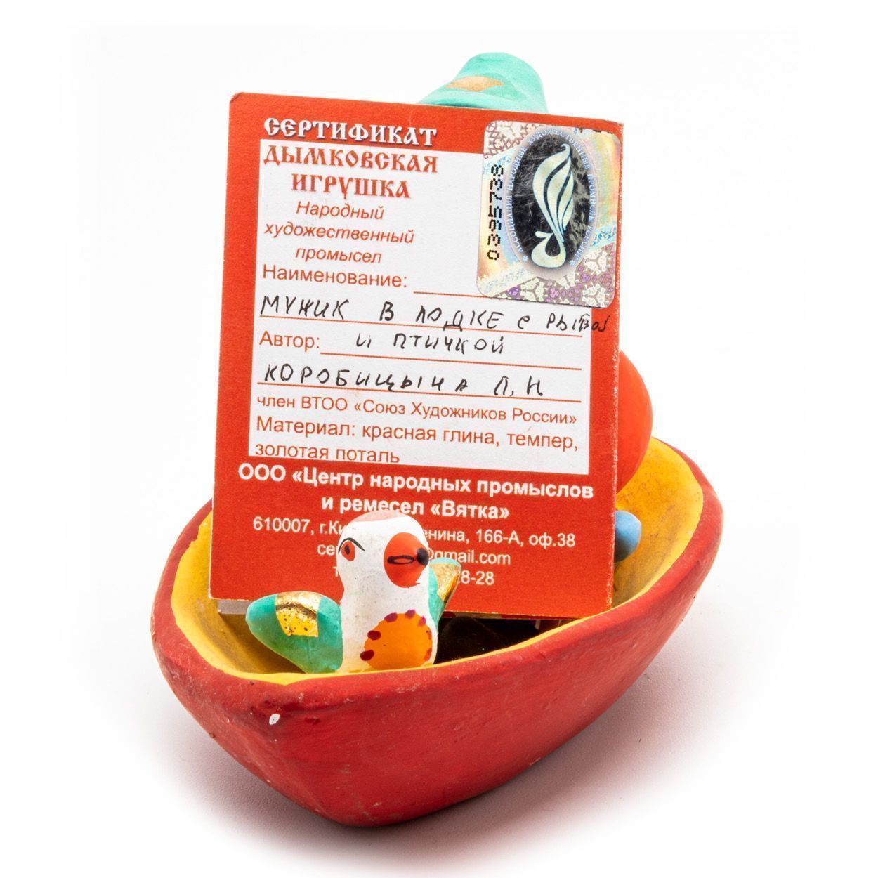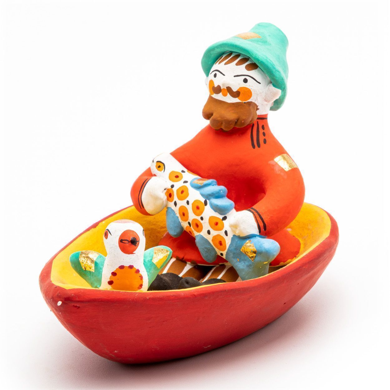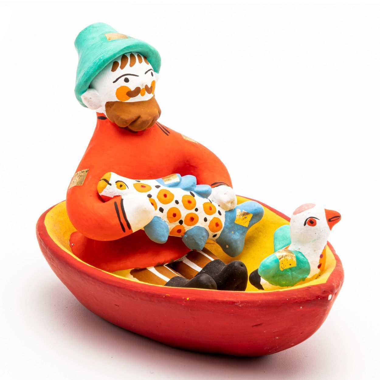 Фигурка "Мужик в лодке с рыбой и птичкой"